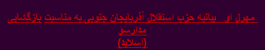 بیانیه حزب استقلال آذربایجان جنوبی به مناسبت اول مهر وبازگشایی